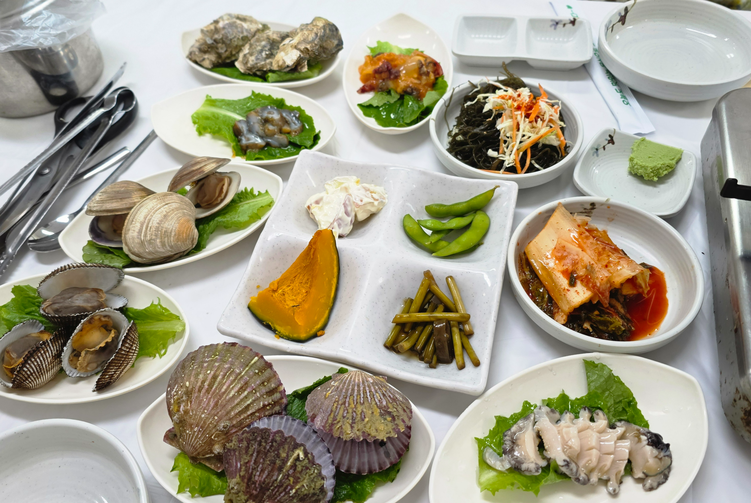 가게 앞 수족관에는 싱싱한 새조개들이 가득 차 있었고, 살아 움직이는 모습만 봐도 신선함이 그대로 전해졌다. 실내로 들어서니 깔끔하게 정돈된 분위기와 함께 바쁜 와중에도 친절하게 응대해 주시는 모습이 인상적이었다. 관광지 식당임에도 불구하고 정신없기보다는 안정감 있는 분위기라 편안하게 식사를 시작할 수 있었다.