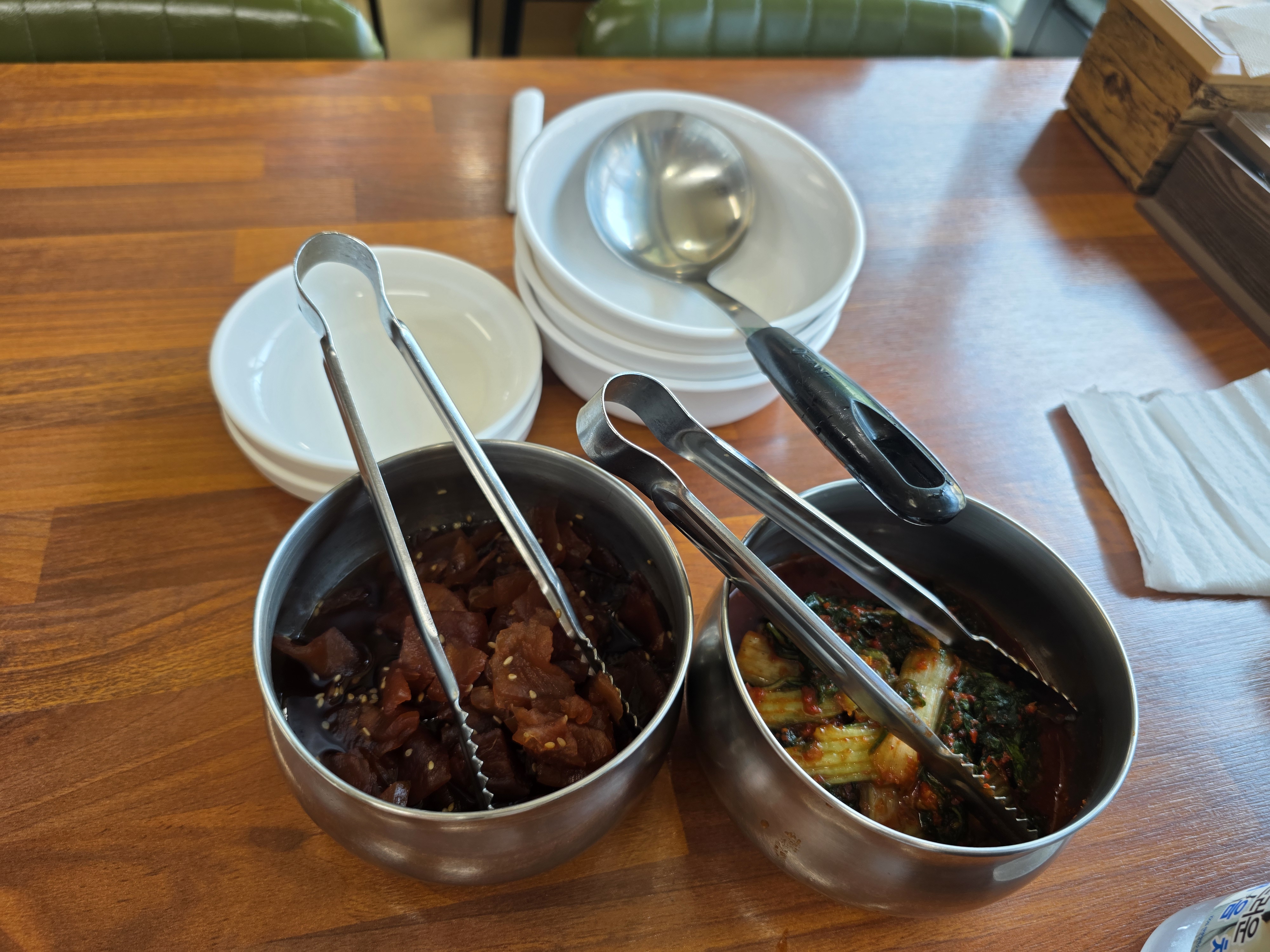 나는 고민할 것도 없이 가장 인기 있는 ‘사골수제비’를 주문했다. 곁들일 반찬은 김치와 장아찌 두 가지뿐이었지만, 김치의 감칠맛이 국물 요리와 찰떡궁합이라는 말을 들었기에 기대감이 더욱 커졌다.