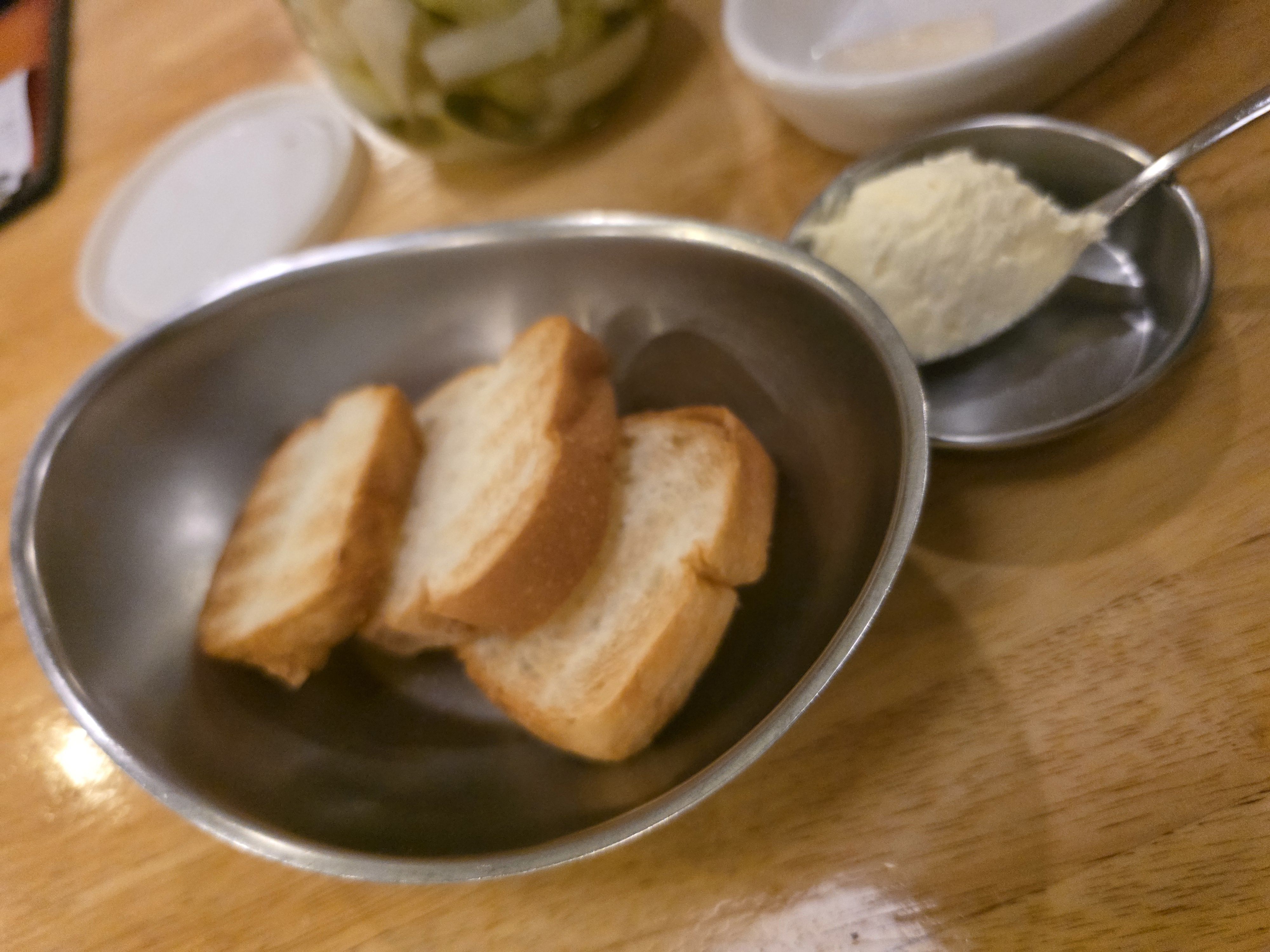따듯하게 나오는 식전빵과 고소한 크림의 조합은