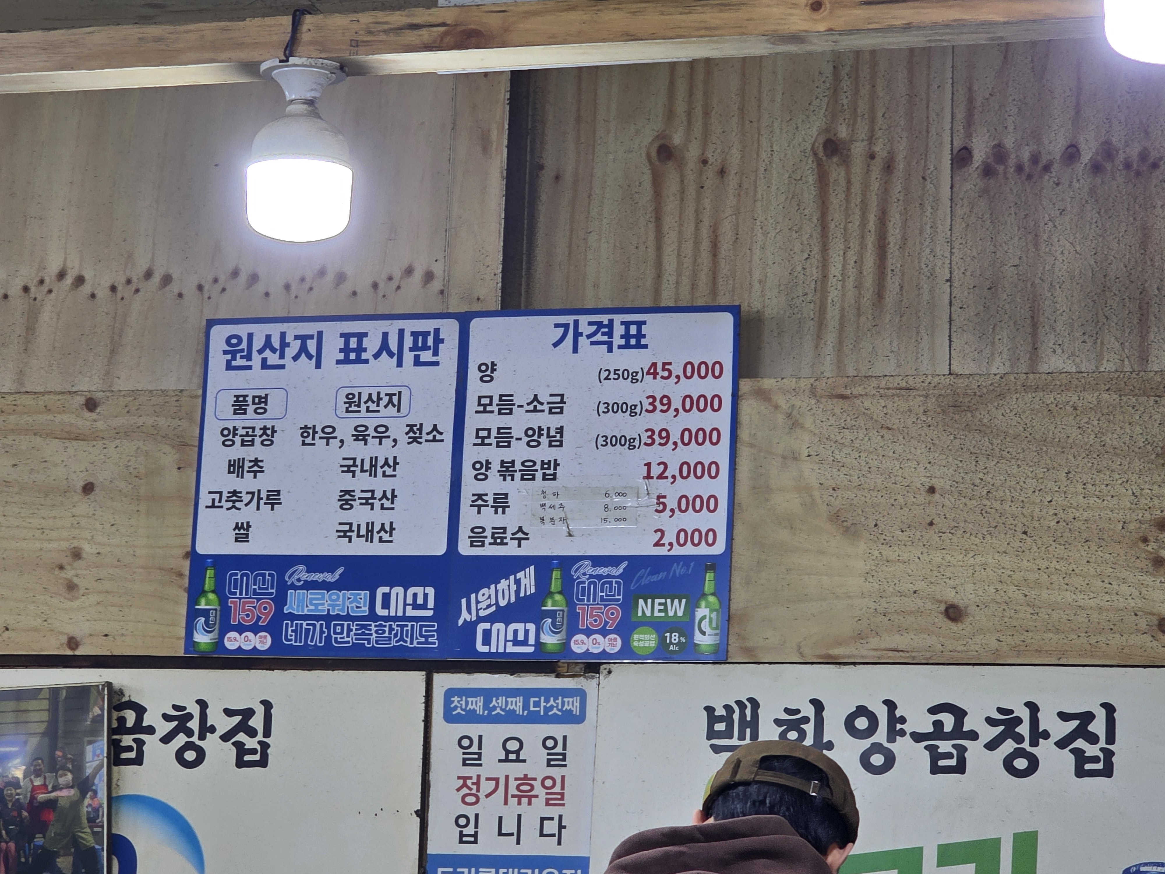 백화양곱창 1호점은 남포동 특유의 복잡하고 정겨운 골목 안쪽에 자리 잡고 있다. 문을 열고 들어서는 순간 가장 먼저 느껴지는 것은 노포 특유의 공기다. 오래된 간판, 연식이 느껴지는 테이블과 의자, 벽면에 자연스럽게 스며든 세월의 흔적까지. 인위적으로 연출한 레트로가 아닌, 진짜 시간이 만들어낸 분위기가 이곳의 가장 큰 매력이다.