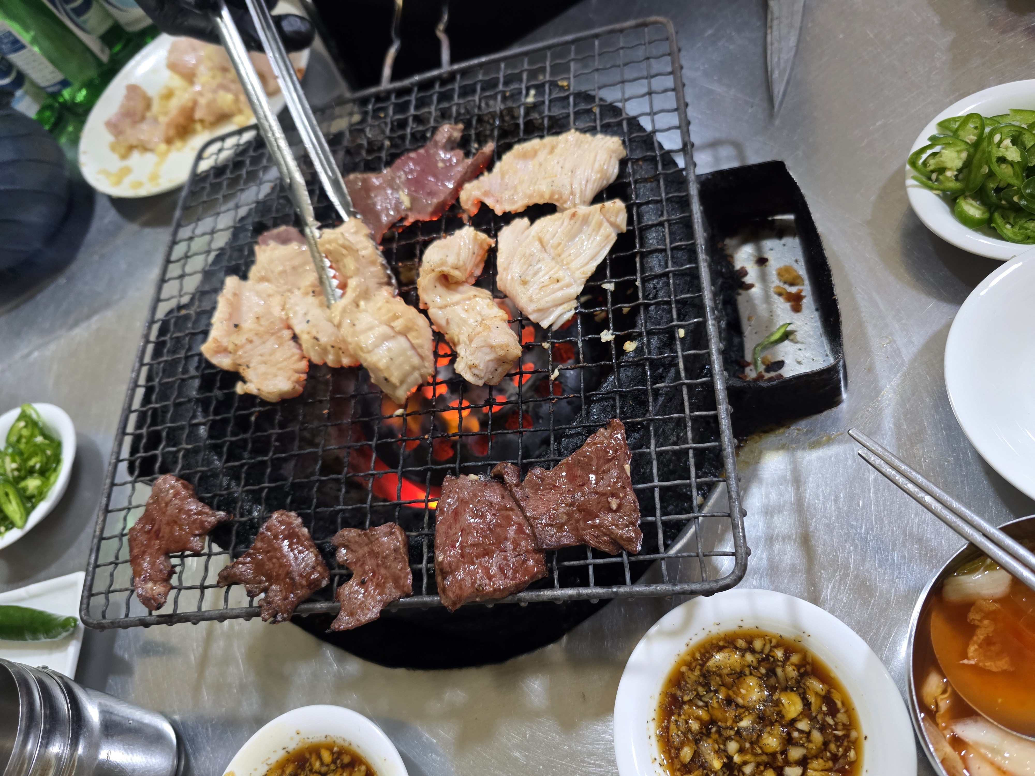 잘 구워진 곱창을 한 점 입에 넣는 순간, 왜 이 집이 오랫동안 사랑받아왔는지 단번에 이해가 된다. 곱창 특유의 고소함이 입안 가득 퍼지면서도 느끼함은 거의 없다. 씹을수록 고기 본연의 단맛이 살아나고, 부위마다 다른 식감이 지루할 틈을 주지 않는다.